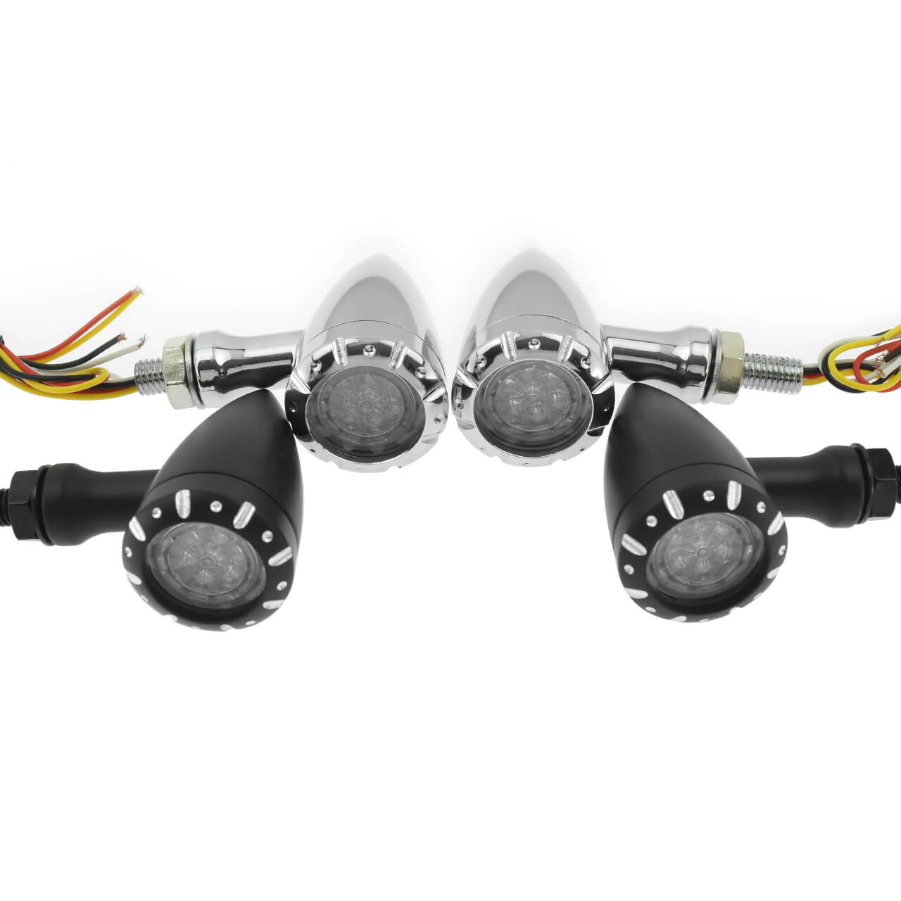 Crafted from durable aluminum alloy and finished in a sleek black, these indicators are not only robust but also add a touch of sophistication to your bike. The amber light color ensures high visibility for enhanced safety. These 12V, 4-wire turn signals are designed for both front and rear placement, offering a comprehensive signaling solution.