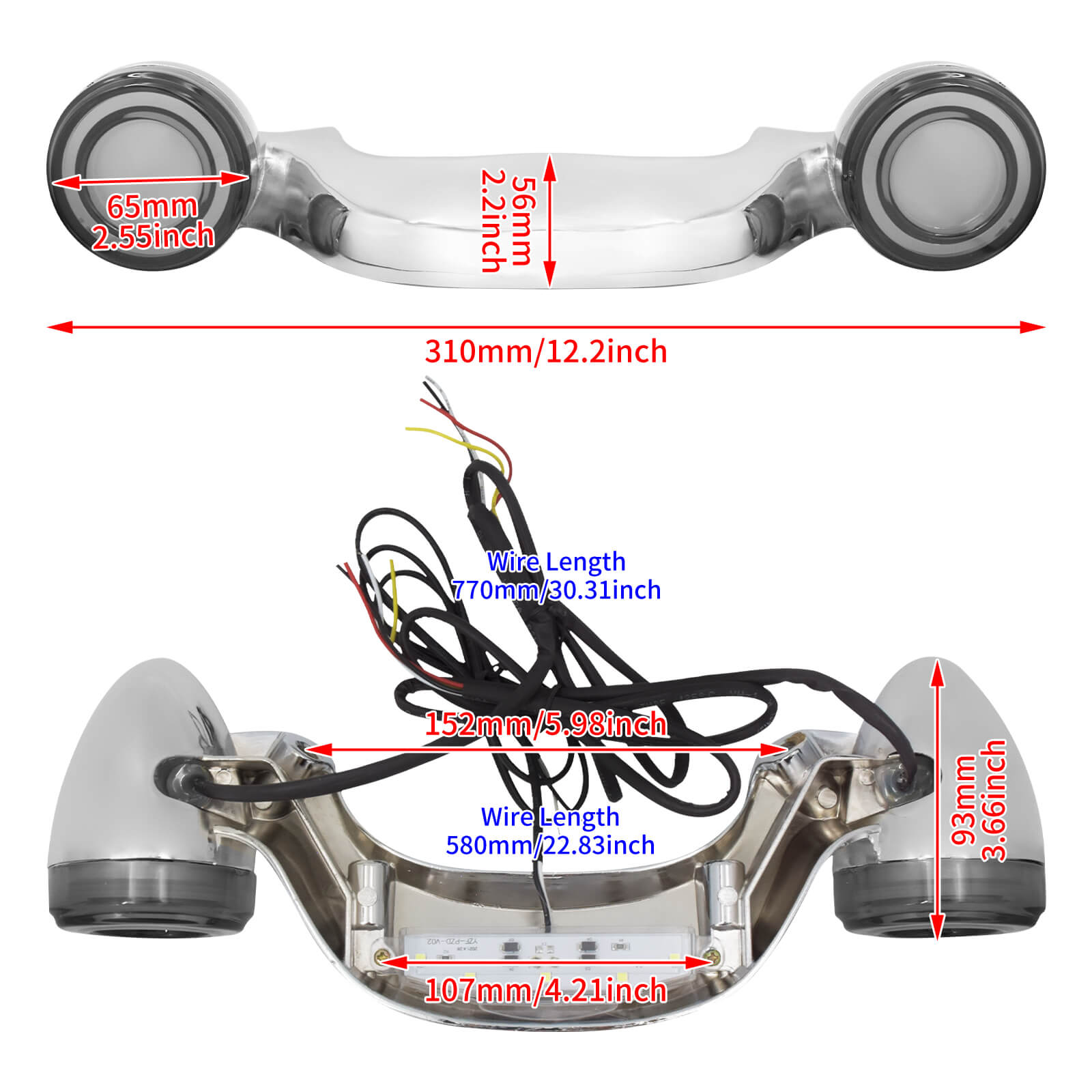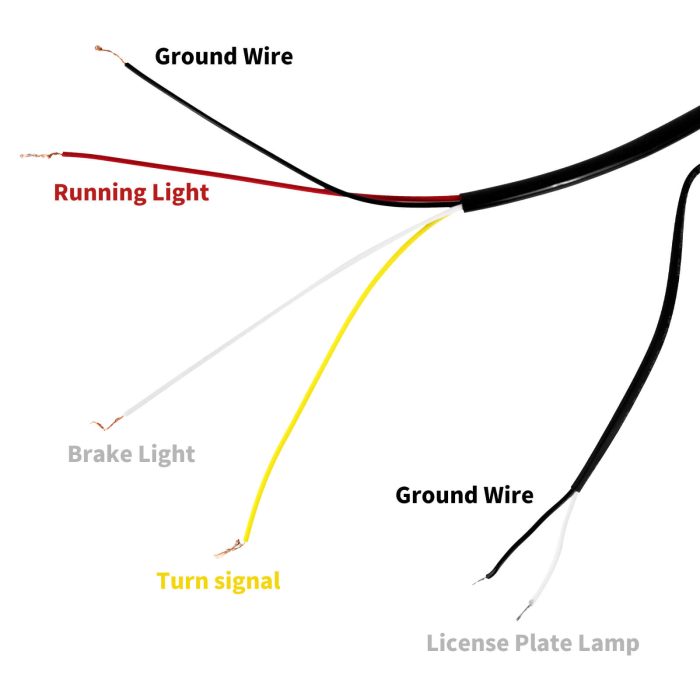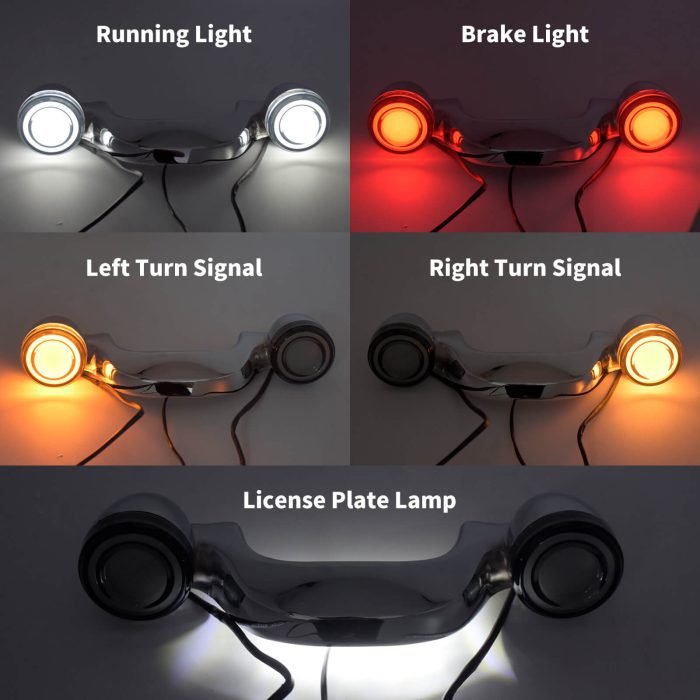 - Function: Running Light(White),Brake Light(Red),Turn Signal Light(Yellow),License Plate Lamp(White)